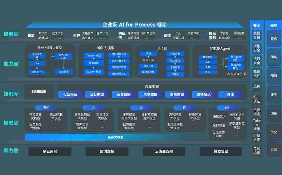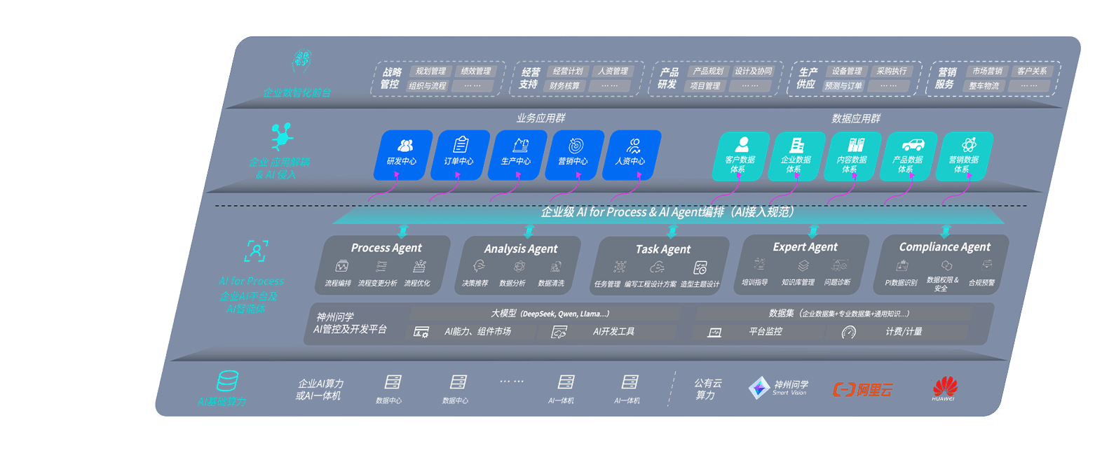 端到端的一站式AI工作空间深度融合了从企业战略规划到日常经营的全流程业务板块,,,定向解决车企内部领域多、、部门多、、、、链条长、、、、场景碎片化等难题,,支持车企快速构建以AI为核心的生产力写作体系,,,,实现任务执行与AI能力的无缝集成与交互